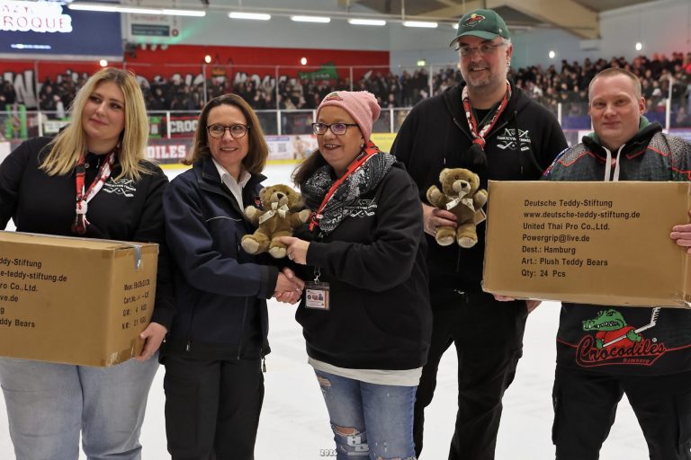 Am 22.12.2024 fand er endlich statt. Unser Tröste Teddy Toss in Zusammenarbeit mit den Crocodiles Hamburg und der Deutschen Teddy Stiftung.